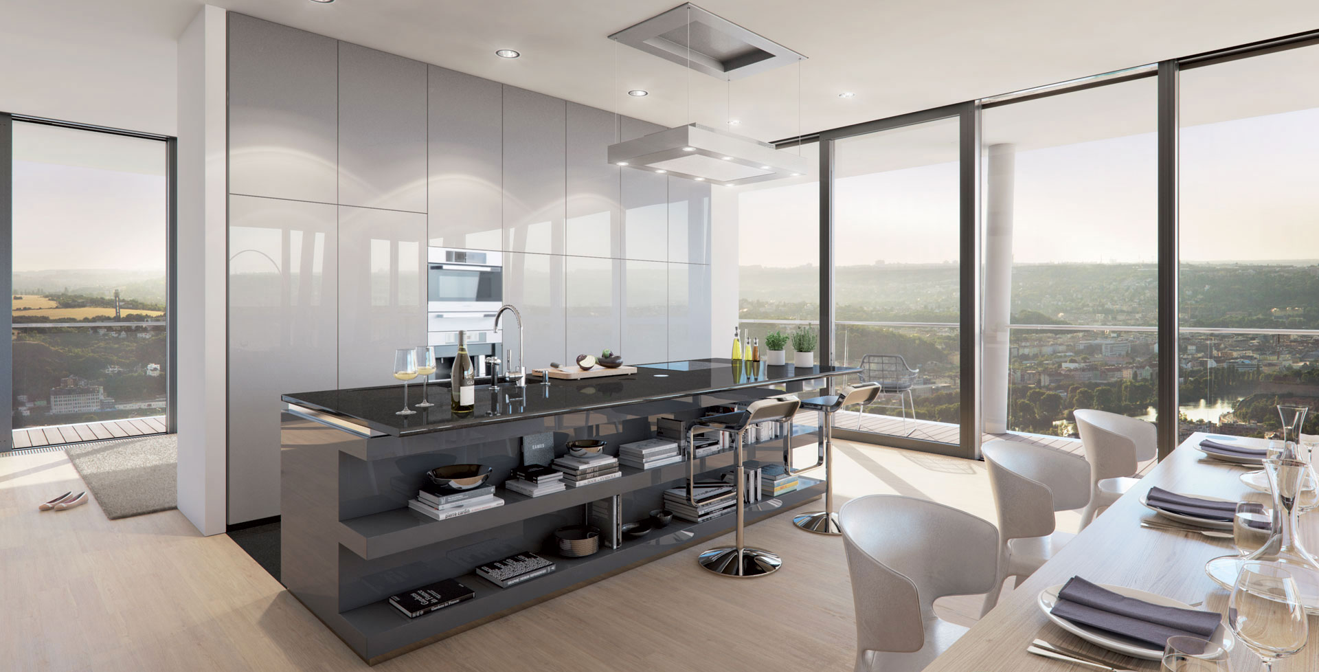Okna od podlahy ke stropu podél celého bytu. Velkoformátové posuvné dveře propojující prosluněné terasy s interiérem vašeho domova. Praha v celé své stověžaté kráse přímo pod vámi. Prostor, který se před vašima očima doširoka otevře každé ráno. Pohled, který vám každé ráno udělá radost. Pocit, díky kterému se budete cítit svobodně.